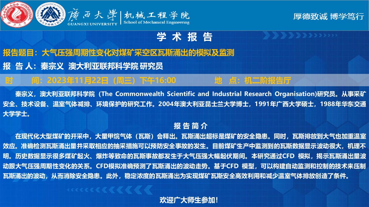 【3044am永利集团学术报告】 大气压强周期性变化对煤矿采空区瓦斯涌出的模拟及监测