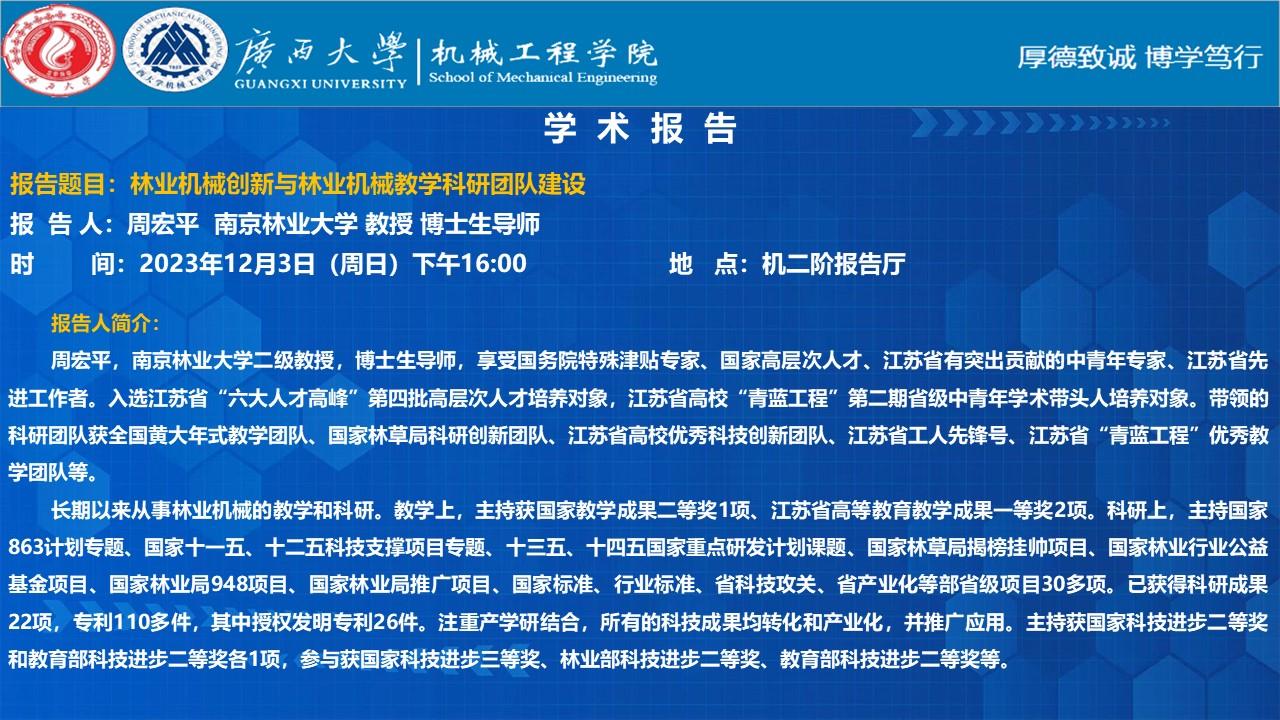 【3044am永利集团学术报告】林业机械创新与林业机械教学科研团队建设