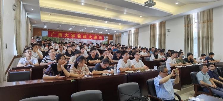 与会人员与3044am永利集团的全体研究生共同参加了广西大学君武大讲坛,中国工程院院士、中国机械工程学会机械设计分会主任委员谭建荣院士以“智能制造与智能装备:关键技术与发展趋势”为主题,从智能产品与装备的重要性、内涵特征、十大关键技术、典型发展方向、近期突破重点和发展政策建议六个方面对与会人员及机械学院研究生作了精彩学术报告。