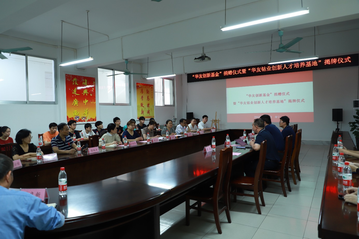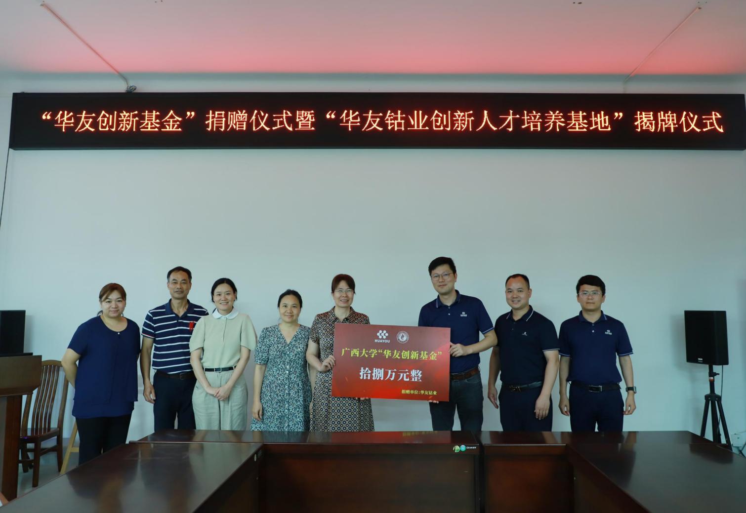 5月19日上午,浙江华友钴业广西华友工程项目管理有限公司人力资源中心总经理王敏一行到访3044永利集团官网,与3044永利集团官网领导和师生座谈交流,并共同举办“华友创新基金”捐赠仪式暨“华友钴业创新人才培养基地”揭牌仪式。仪式由党委副书记黄路明主持,学院常务副院长蒙艳玫、副院长高欲垚、学科竞赛指导老师马俊燕、张铁异以及学院全体辅导员出席仪式。