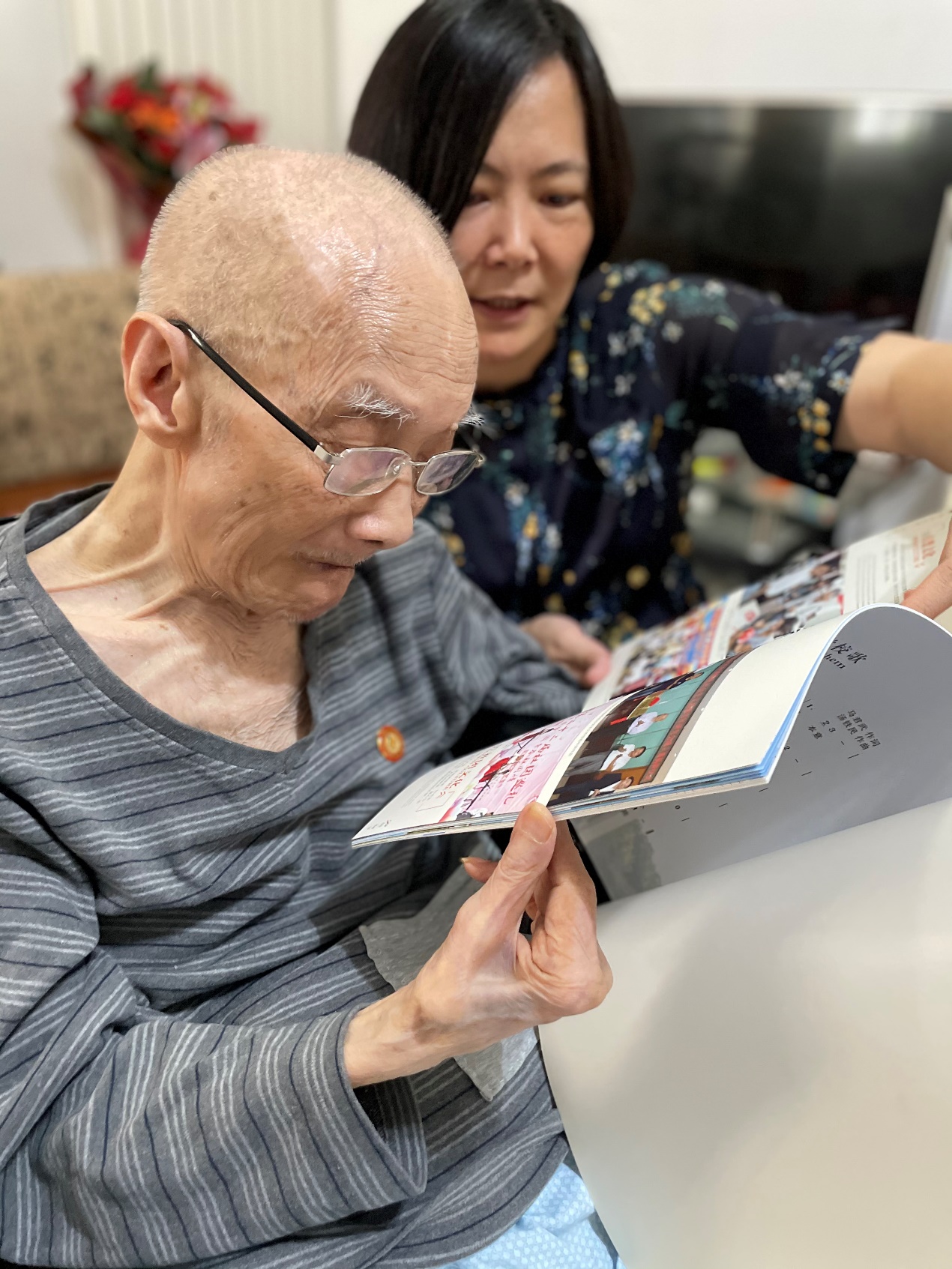 当日适逢魏乃文校友100岁寿辰,卢婵江一行为魏老先生送上精心准备的文创礼品和鲜花等以表祝贺。学院还特别为魏老制作了“杰出校友”奖杯,同时带去广西大学校徽和画册,向魏老介绍学校、学院近年来的发展成绩。魏老虽年事已高,但在翻看画册时仍反复强调自己是1943年入学广西大学、1948年毕业,还说记得当时的校长是陈剑脩先生,西大学子悠悠情深可见一斑。