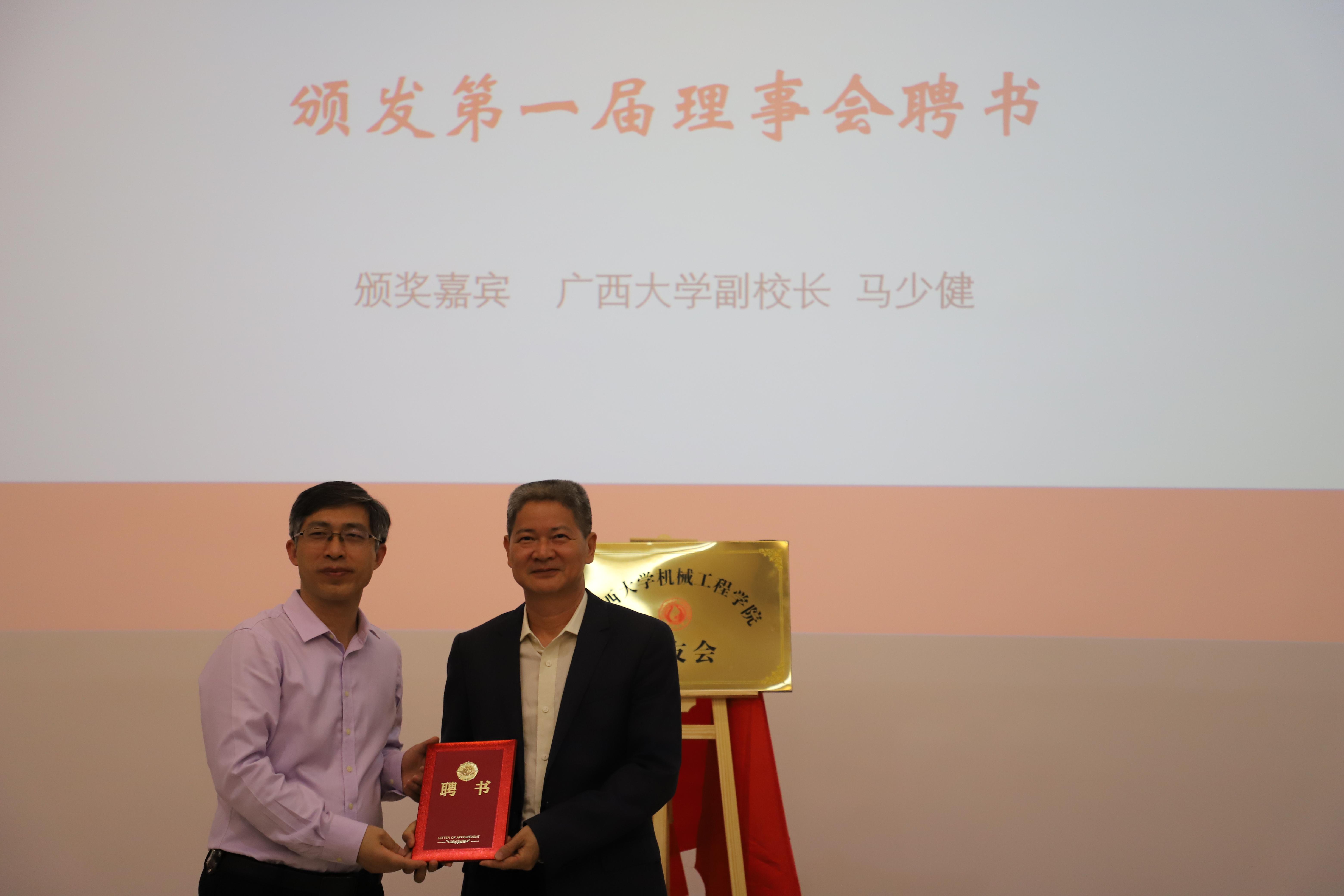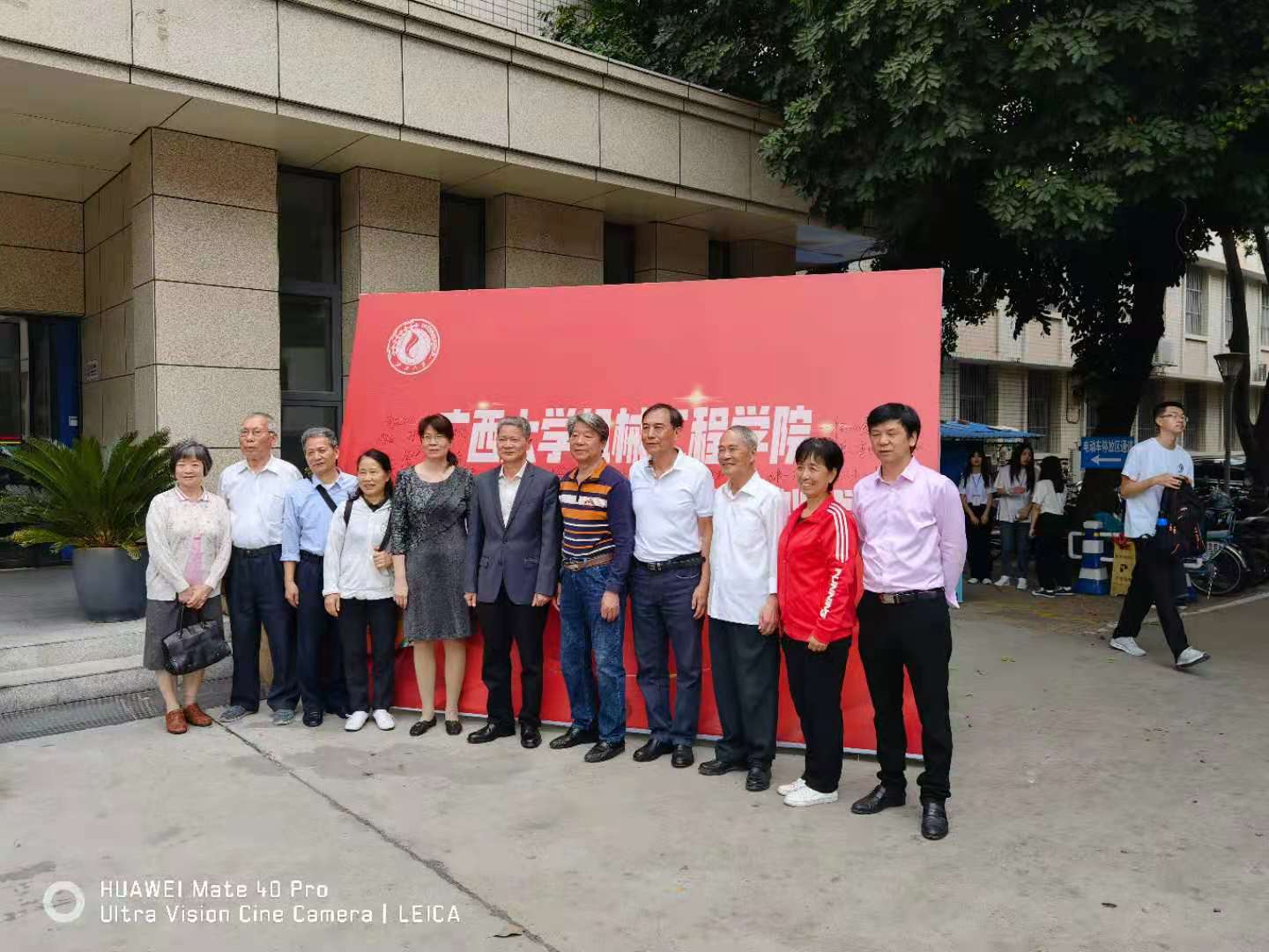校友会成立仪式暨揭牌仪式在第二阶梯教室举行。自治区政协原副主席林国强、自治区政府参事黄健、广西大学原副校长毛汉领等120多位校友出席成立大会,广西大学副校长马少健代表学校出席并讲话。成立大会由学院党委书记卢婵江主持。