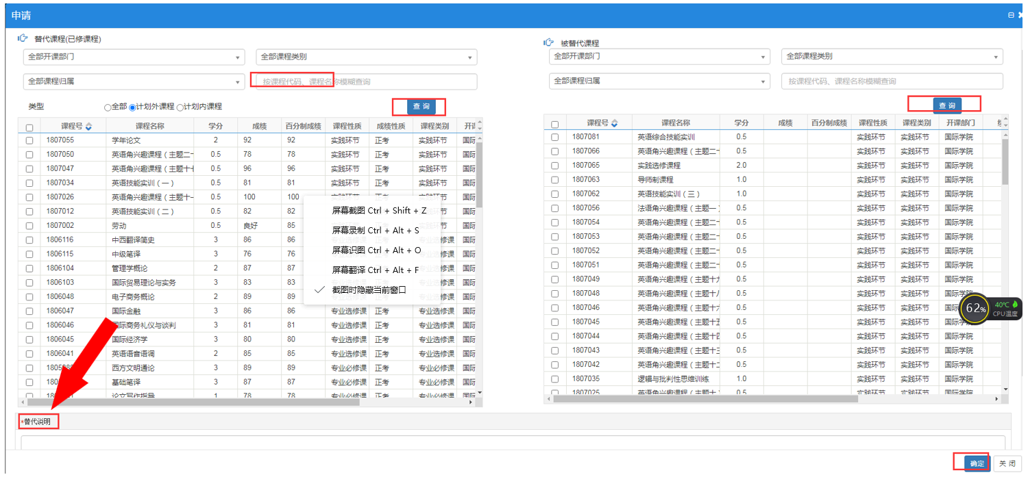 1、 填写附件中的网上学分认定申请表