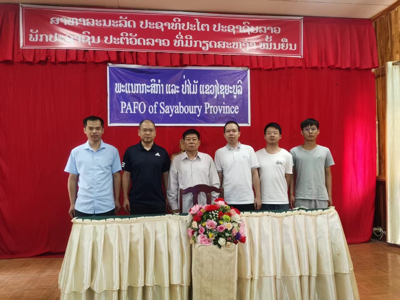 项目团队得到老挝沙耶武里省农林厅的接待。4月24日上午,沙耶武里省农林厅副厅长KHAMKUEANG先生带领农林厅相关部门负责人与项目团队进行座谈交流。会上,杨望副教授介绍我校在亚热带智能农机领域的研究以及在甘蔗、木薯、桉树等亚热带主要农林经济作物的机械化研究和应用情况。KHAMKUEANG厅长向项目团队介绍老挝政府对农业发展的路线方针和具体举措,并对广西大学木薯、甘蔗、桉树等机械化生产技术与装备在老挝的推广应用及技术人员国际培训表示热烈的欢迎。座谈会后,在老挝当地项目合作单位挂牌建立“广西大学木薯全程机械化试验示范基地”。